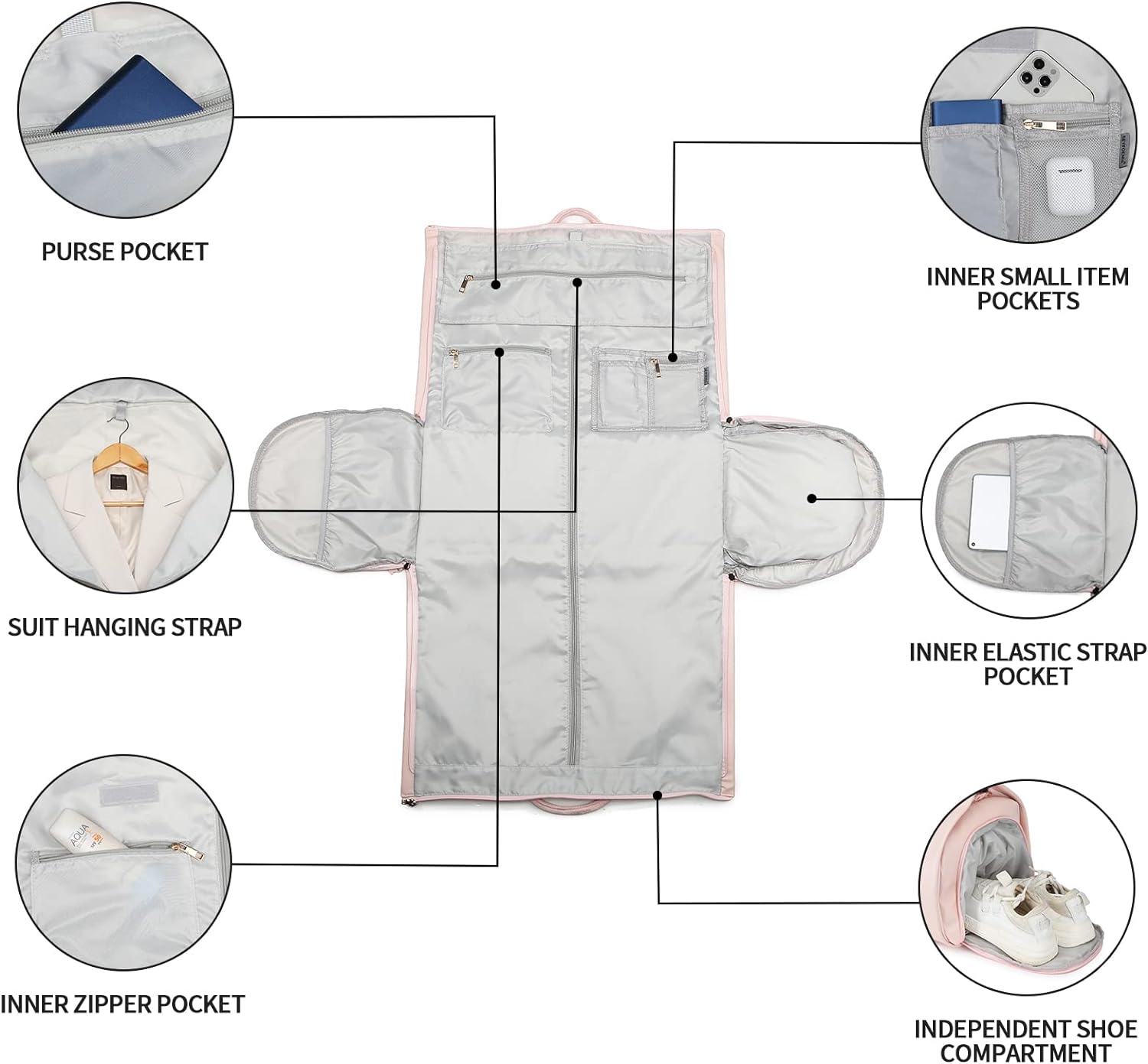 Constructed with durable materials, this garment bag is built to last through countless trips. The spacious main compartment is perfect for holding multiple garments, while the built-in shoe compartment keeps your footwear separate and protected. The rolling duffle bag design allows for easy packing and unpacking, making it ideal for both short trips and extended stays.