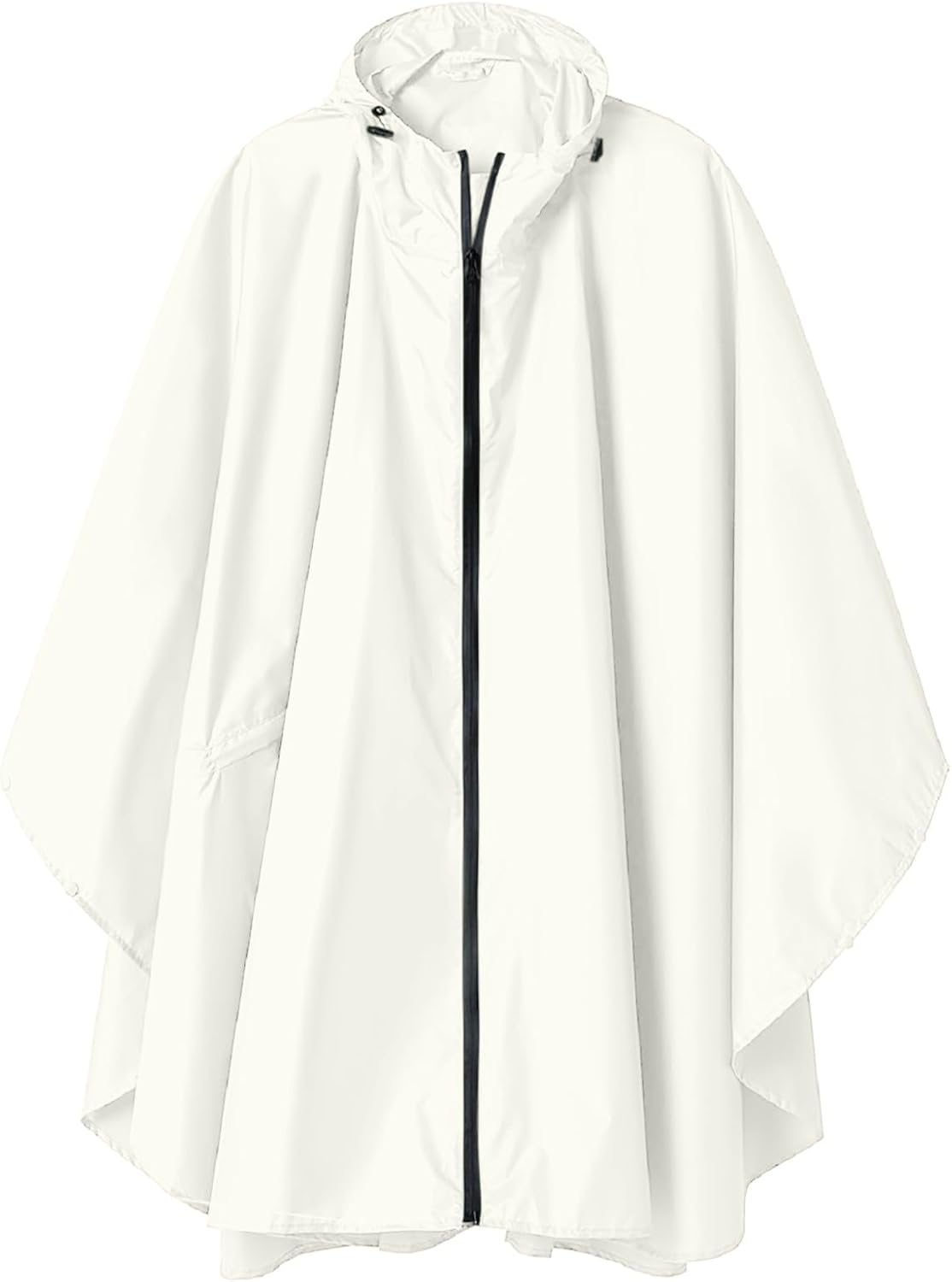 Unisex Solid Color Hooded Rain Zippered Poncho Waterproof Shawl Raincoat Jacket for Men Women Adults Scarfs Summer