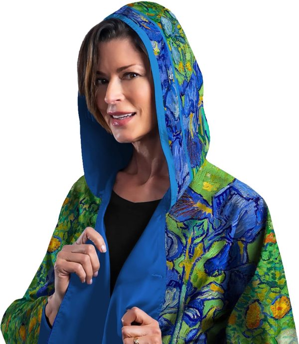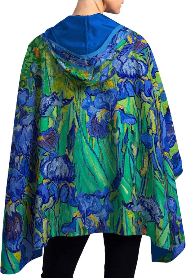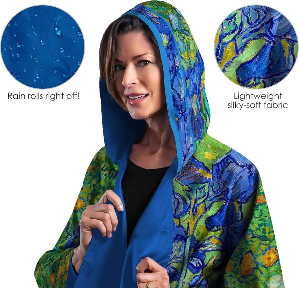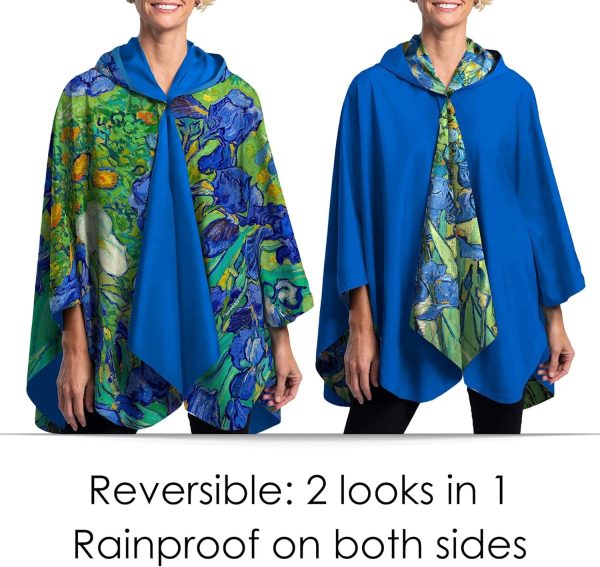 Womens Rain Cape Poncho Coat Waterproof with Hood Reversible Fine Art