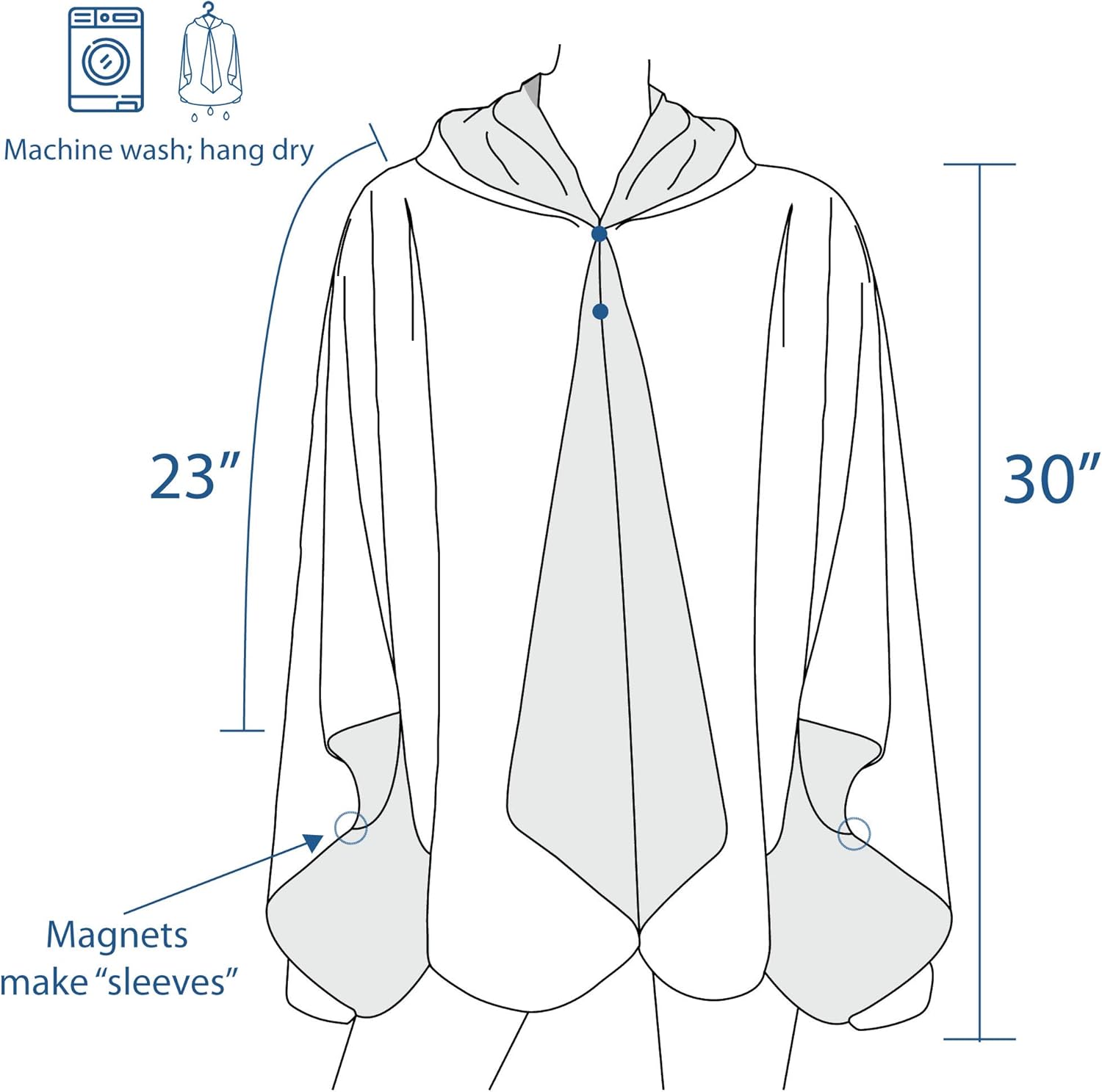 Stay stylish and dry on rainy days with our Women’s Rain Cape Poncho Coat. This reversible fine art poncho features a waterproof design with a hood to keep you protected from the elements. Whether you’re out running errands or taking a leisurely stroll, this versatile poncho will keep you looking chic while staying comfortable. Don’t let the rain dampen your style – upgrade your rainy day wardrobe with this fashionable and functional rain cape poncho coat.